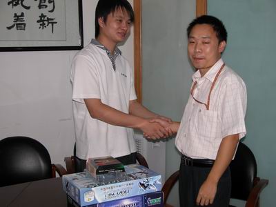 2004年9月27日,也是中秋的前夕,百年奧運(yùn)競猜活動(dòng)的重磅人物--特等獎(jiǎng)得主曹而先生終于亮相商科集團(tuán),領(lǐng)走了他的頭等大獎(jiǎng)(碩泰克K8+銘瑄5700ultra+AMD Athlon64 3000+cpu)一共價(jià)值現(xiàn)金5000元。