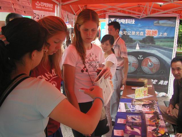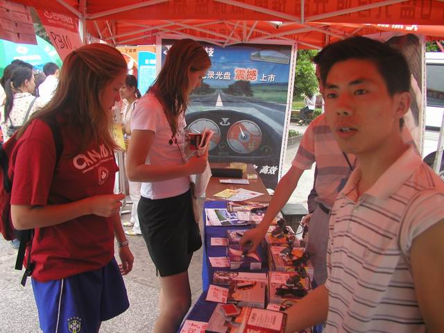 23 來,來,來,過來看看,這倆位美國留學生 Francisco 和 Duran 也來到了我們的展示現(xiàn)場。