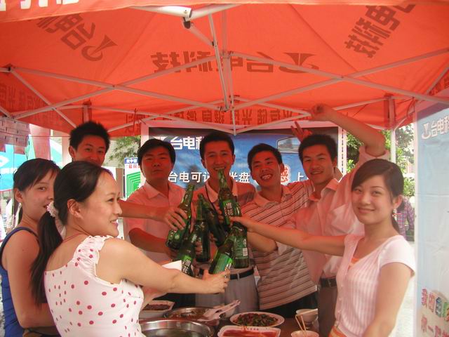 25 下午2點半,終于可以填填肚子了,好累呀,喝點小花酒,養(yǎng)養(yǎng)神。下午還要工作呢,來,為臺電和銘瑄maxaun還有SOYO的明天干杯!