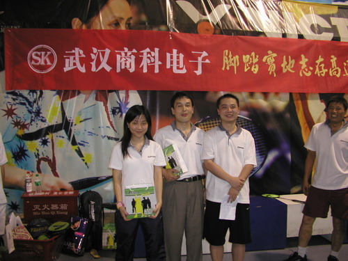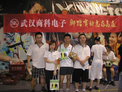 2005年6月20日,頂著烈日驕陽,武漢商科電子一行來到了武漢國際會展中心體育館,今天我們要在這里舉行一場你爭我奪的混雙羽毛球比賽。聽說獎品還是挺豐厚的,大伙一個個摩拳擦掌,躍躍欲試,向著冠軍沖啊….!!!
