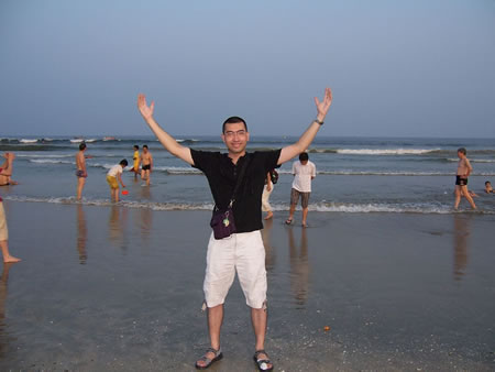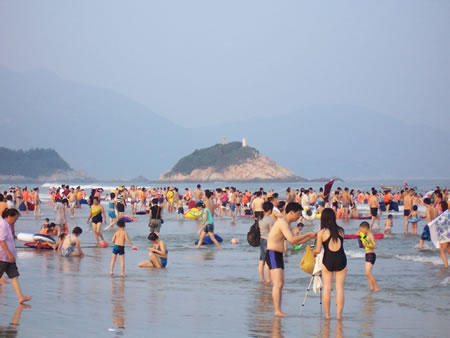 十月國(guó)慶,天氣放晴,廣分上川團(tuán)一行二十二人,浩浩蕩蕩來到了位于臺(tái)山的上川島。上川島有很多迷人的海灘,最受歡迎的是飛沙灘(4800米)、金沙灘(5200米)、銀沙灘(800米),三者間相隔僅一公里,雖各沙灘風(fēng)姿各異,但均呈現(xiàn)出沙質(zhì)潔白細(xì)膩、海水清澈見底子薄、沙灘平緩寬闊、海浪多而不大、腹地林木郁郁蔥蔥。
