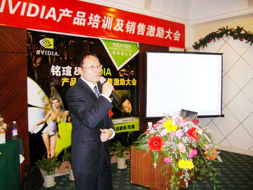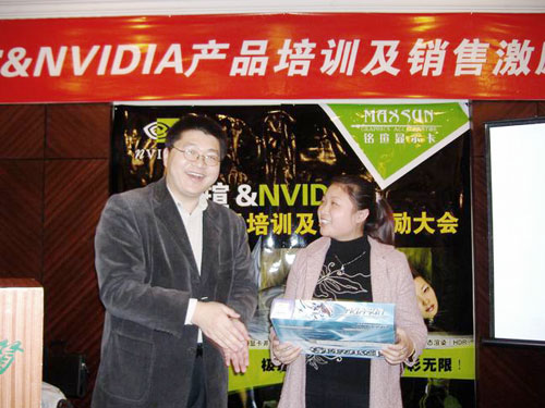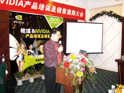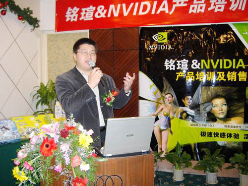 緊接著NVIDIA中國區(qū)銷售經(jīng)理侯宇濤先生對(duì)NVIDIA的成長歷程,先進(jìn)的顯示技術(shù),產(chǎn)品的市場(chǎng)走勢(shì)做了詳細(xì)介紹。特別對(duì)今年nVIDIA“三重威力”所包涵的最新顯卡技術(shù)作了重點(diǎn)講解,陰影渲染優(yōu)化(SM3.0)、高精度動(dòng)態(tài)渲染(HDR)和超級(jí)顯卡并聯(lián)(SLI)已經(jīng)在Geforce6及其以上的顯卡中得到了完美展現(xiàn),成為了NVIDIA今年快速成長的助推器,對(duì)于2005年度銘瑄攜手NVIDIA在市場(chǎng)推廣方面所作的努力表示肯定,并對(duì)雙方繼續(xù)加強(qiáng)合作表示了積極展望。