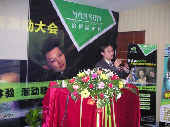 銘瑄產(chǎn)品經(jīng)理黎強(qiáng)對NVIDIA的成長歷程,先進(jìn)的顯示技術(shù),產(chǎn)品的市場走勢做了詳細(xì)介紹。對于2005年度銘瑄攜手NVIDIA在市場推廣方面所作的努力表示肯定,并對雙方繼續(xù)加強(qiáng)合作表示了積極展望。