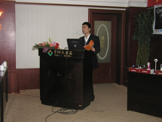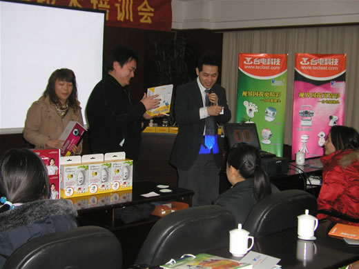 武漢分公司蔡家良在熱情洋溢地演講臺(tái)電的產(chǎn)品特點(diǎn)和渠道的規(guī)劃方向