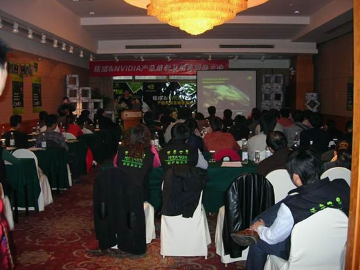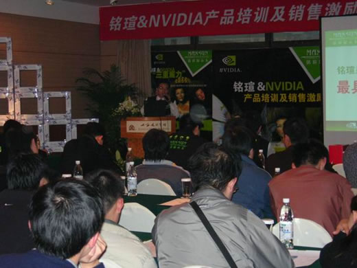 這次會(huì)議在上海建國(guó)賓館舉行,會(huì)場(chǎng)經(jīng)過(guò)了工作人員精心準(zhǔn)備,銘瑄、NVIDIA及眾多經(jīng)銷(xiāo)商共聚一堂,整個(gè)會(huì)場(chǎng)座無(wú)虛席,氣氛相當(dāng)熱烈。