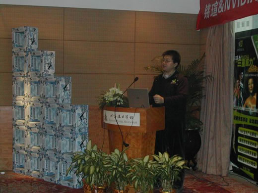 隨著銘瑄&NVIDIA全國(guó)經(jīng)銷(xiāo)商會(huì)的召開(kāi),大家對(duì)NVIDIA中國(guó)區(qū)渠道經(jīng)理侯宇濤先生已經(jīng)非常熟悉,侯先生就NVIDIA的產(chǎn)品情況給大家做了詳細(xì)的培訓(xùn),在前幾次培訓(xùn)三重威力的基礎(chǔ)上,這次還重點(diǎn)強(qiáng)調(diào)了2006年NVIDIA即將推出的G70系列顯卡及先進(jìn)的Purevideo視頻技術(shù)。
