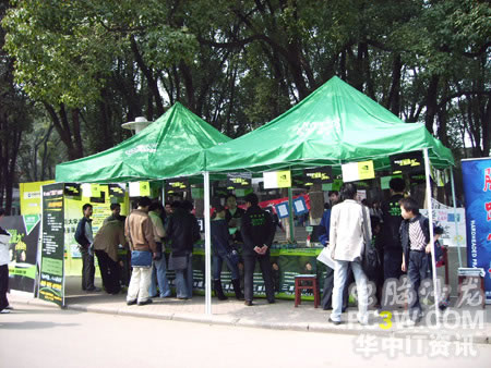 產(chǎn)品展示及現(xiàn)場(chǎng)演示區(qū)設(shè)在華中師范大學(xué)主校區(qū)學(xué)子餐廳門前。整個(gè)演示區(qū)基本上沿襲了上一站武漢大學(xué)站的風(fēng)格,分為產(chǎn)品展示區(qū)及現(xiàn)場(chǎng)演示區(qū)。