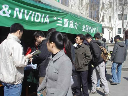 新春尹始,銘瑄攜手NVIDIA三重威力全國名校行活動(dòng)經(jīng)過廣州、南昌、成都、重慶、深圳、武漢、南京、上海、杭州、西安等站之后,又來到素有"東方莫斯科"之稱的北方名城哈爾濱市。此次活動(dòng)正值開學(xué)之際,廣大學(xué)生正為新學(xué)期做著積極準(zhǔn)備,IT產(chǎn)品已成為學(xué)生們學(xué)習(xí)生活中不可或缺的部分,很多學(xué)生都是選擇在此時(shí)為自己配上一臺心儀的電腦。活動(dòng)將從2月20日開始,至3月30日結(jié)束,為期超過一個(gè)月,將在全國13座城市,包括清華、人大、浙大、中大等在內(nèi)的25所名校展開。