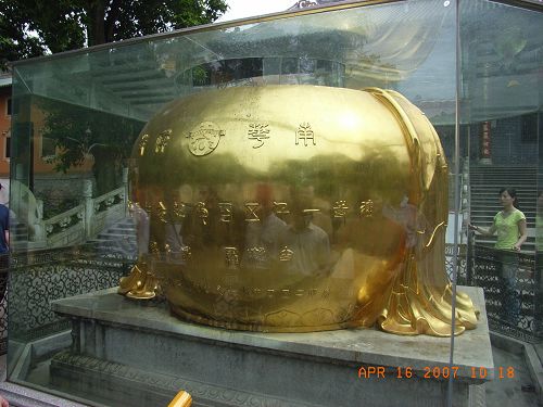 寺廟規(guī)模宏偉,香火鼎盛,殿宇巍峨,氣派非凡,殿中佛像莊嚴,五百羅漢栩栩如生,寺內(nèi)保存有六祖慧能祖師真身,更珍藏有中國女皇武則天的護寺圣旨,御賜千佛袈裟及大藏經(jīng)等珍貴文物,極具歷史價值。(可是不允許拍照,好可惜。)