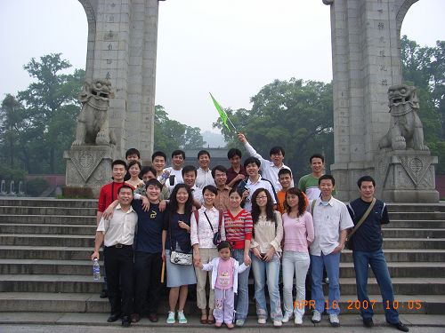 要回家了,在寺前來個集體留影