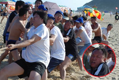 拔河比賽,后面那個紅臉團(tuán)友注意了,輸就輸唄,不哭。。。不哭。。。