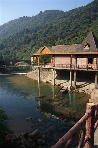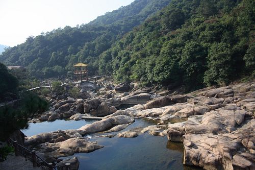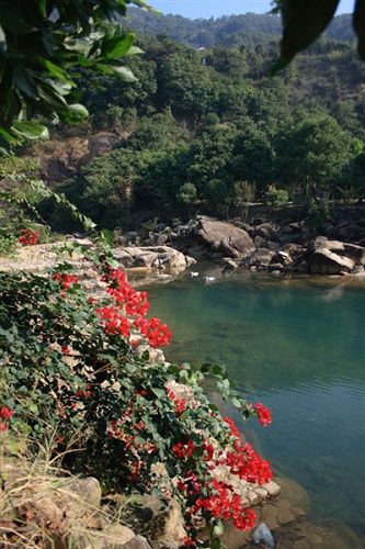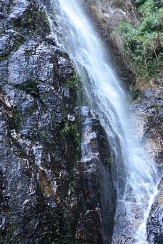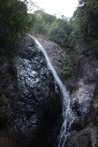南昆山西南面的石峽山。峽谷盡頭,懸崖峭壁,約有20米高。該瀑布四季不斷,每年汛期,更為壯觀。游人沿著石階拾級(jí)而上,未到景點(diǎn),先聞瀑聲。站在距瀑布近10米的涼亭上,水花濺落周身,暑氣頓消。由于我們?nèi)サ氖墙炝,所以看到的景色并沒有像上面描述的那么美。