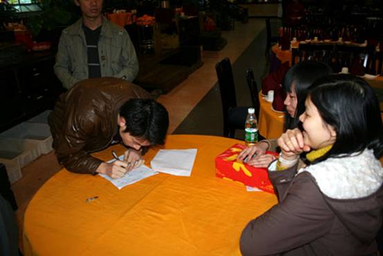下午4時(shí)整,全體與會(huì)人員懷著興奮的心情,準(zhǔn)時(shí)來(lái)到位于廣州市區(qū)大嘴漁港飯店的禮堂大會(huì)場(chǎng)。在進(jìn)入會(huì)場(chǎng)之后,工作人員為大家準(zhǔn)備好了抽簽箱。每人都能抽取一個(gè)編號(hào),根據(jù)這個(gè)編號(hào)大家就能參加商科傳統(tǒng)的抽獎(jiǎng)活動(dòng)了。