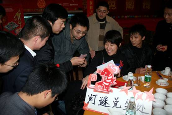 先到場(chǎng)的工作人員早已經(jīng)為大家準(zhǔn)備好了燈謎競(jìng)猜活動(dòng)。在晚會(huì)開(kāi)始之前,先到的同事和領(lǐng)導(dǎo)們興致勃勃的加入燈謎活動(dòng)之中。