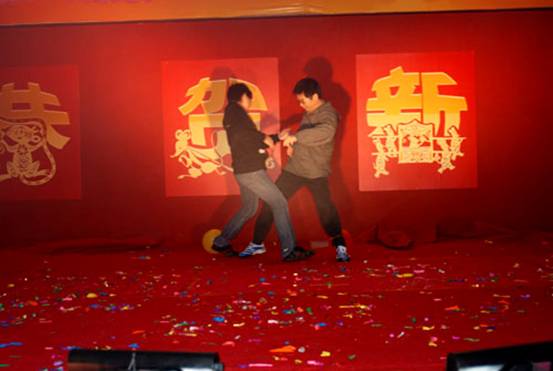 由每桌自愿上臺(tái)的同事來(lái)為大家進(jìn)行表演。