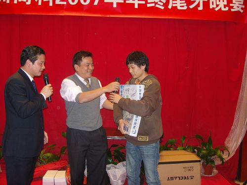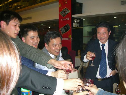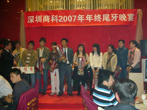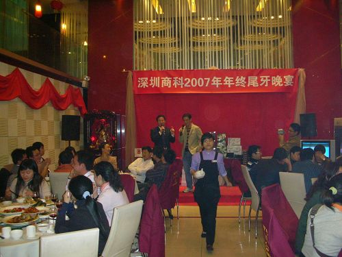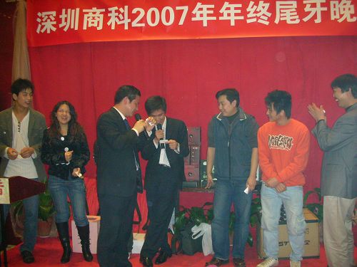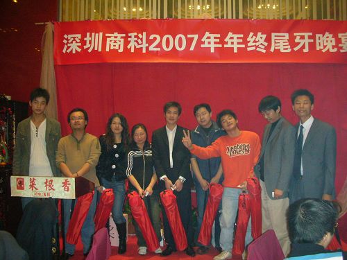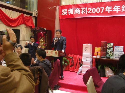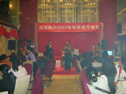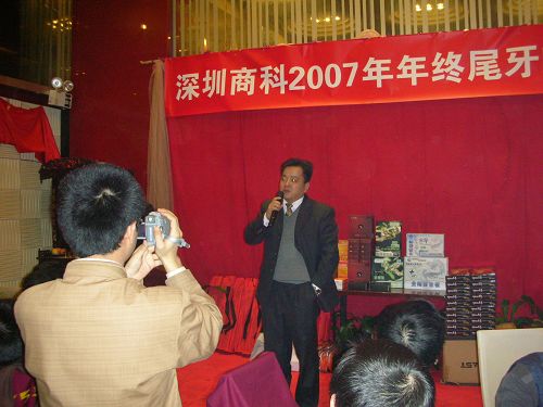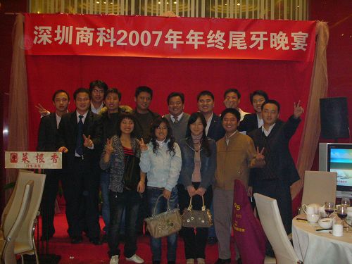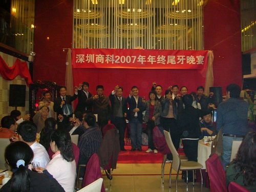 深圳商科為感謝廣大經(jīng)銷商與媒體朋友.在過去一年里的支持與厚愛,于2008年元月24日在深圳市華發(fā)北路菜根香大酒樓舉辦“深圳商科2007年年終尾牙晚宴”,當(dāng)晚也非常榮幸地請到商科總公司劉總與大家共渡晚宴,同時劉總與深圳分公司經(jīng)理余軍攜全體員工向廣大經(jīng)銷商及媒體朋友祝酒。