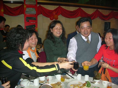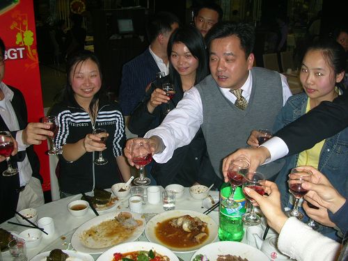 進(jìn)入晚宴總部劉總與深圳公司余經(jīng)理向客戶敬酒