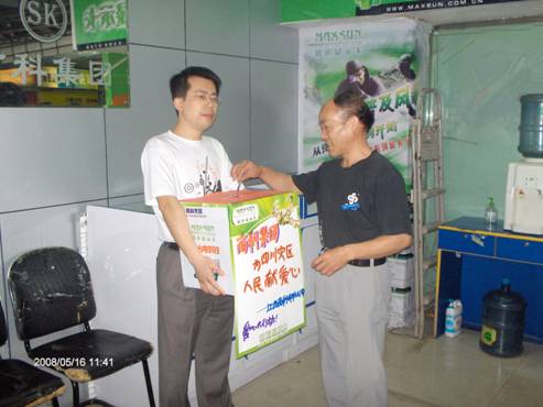 1、一方有難八方支援一直是中華民族優(yōu)良的傳統(tǒng),天災(zāi)無情人有情,在我們的兄弟姐妹正在受到災(zāi)難折磨的時(shí)候,作為一個(gè)有良知的中國人,我們是不是更應(yīng)該拿出自己的一片愛心,有人的出人,有力的出力,用我們的愛心來支援一下災(zāi)區(qū)的同胞們?江西商科電腦公司吳暉經(jīng)理率先向?yàn)?zāi)區(qū)進(jìn)行了愛心捐款。