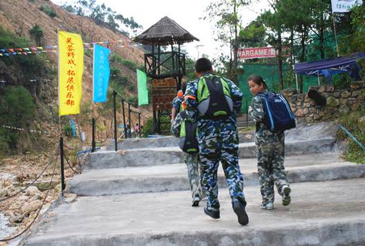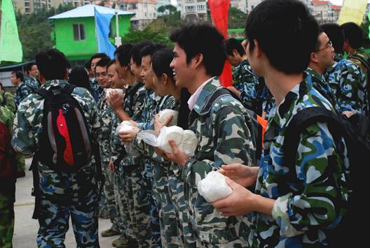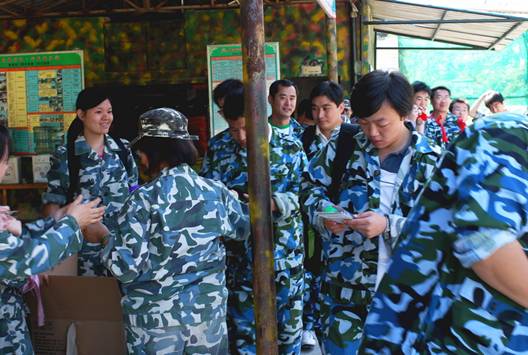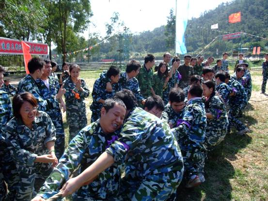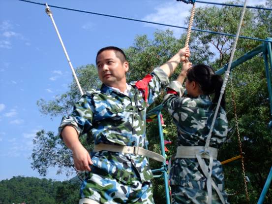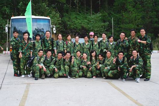 為了豐富員工的生活,同時加強同事之間的了解、信任和團結(jié),商科集團于11月8號、9號兩天,在花都芙蓉度假村舉辦了戶外拓展活動。商科各地分公司部分同事及總部各部門全體員工參加了這次別開生面的活動。 這次活動安排了定向越野、排球、拔河、基地拓展等一系列的豐富多彩的內(nèi)容。集休假放松、適度的探險、體育運動、拓展游戲等多種項目為一體,不僅使員工們得到了充分的休息,而且也讓大家從中學習和感受到在辦公室里沒有的體驗。 活動于11月8號的7點30分開始,全體員工按時到達廣州商科集團總部,光大銀行大廈門口集合,乘坐豪華旅游大巴前往位于花都的芙蓉度假村。 ![]() 圖說:商科全體員工搭乘豪華旅游大巴來到花都芙蓉度假村 在到達花都芙蓉度假村之后,首先入住酒店,稍事休息和調(diào)整。 10點整,全體員工再次集合,乘坐大巴來到山頂?shù)耐卣褂柧毣亍?在到達基地后,大家換上基地準備好的迷彩服,正式開始了為期兩天的拓展訓練活動。