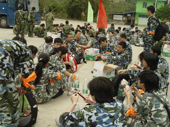 在做完熱身運動后,拓展活動也拉開了序幕。 既然是集體活動,集體的概念也是最基本的。在教練的帶領(lǐng)下,近200名商科同事劃分為7個小隊。教練給出15分鐘時間,要各小隊決定自己的隊名、口號、隊歌和隊伍造型。 二、別開生面的午餐 在進行了隊伍風采展示后,時間已經(jīng)12點多了,現(xiàn)在該補充點能量了。今天的午餐是什么呢。沒有大魚大肉哦。