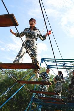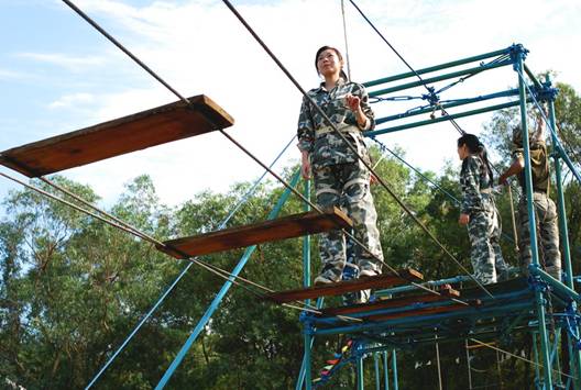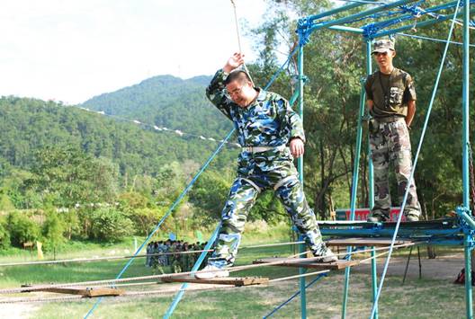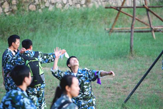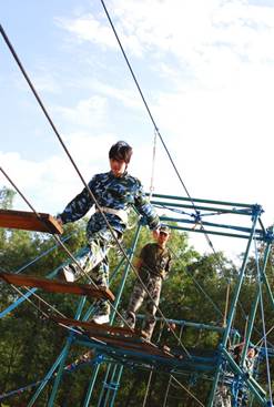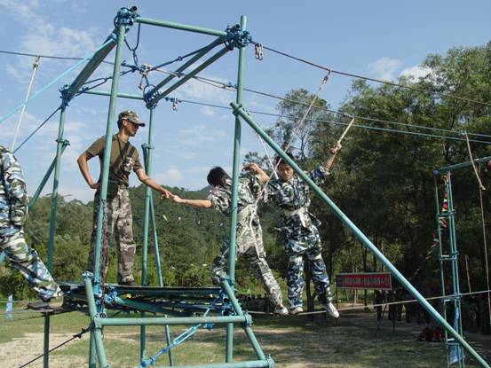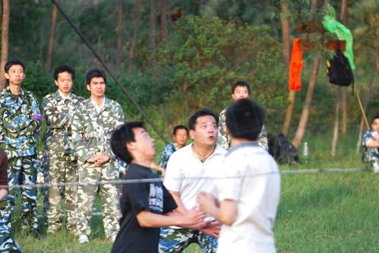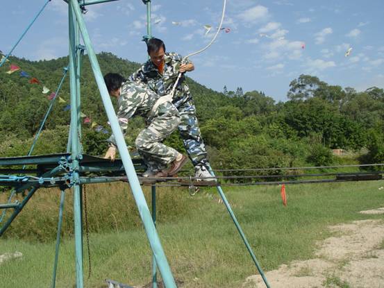 飛奪瀘定橋。這個項目是從高空的木板橋上通過,木板的間隙比較大?此坪唵危呛芏嗳苏旧先,雙腿就開始不由自由的哆嗦,這很能鍛煉人的勇氣哦。 這個項目讓許多人有一點害怕,但是當有的同事在上面感到恐懼的時候,下面的同事齊心協(xié)力的為他加油打氣,增加他的信心和勇氣。在大家的鼓勵下,同事們一一通過了這個項目。