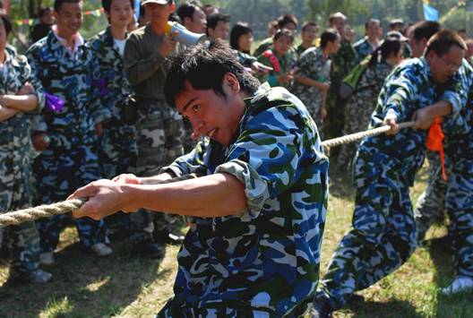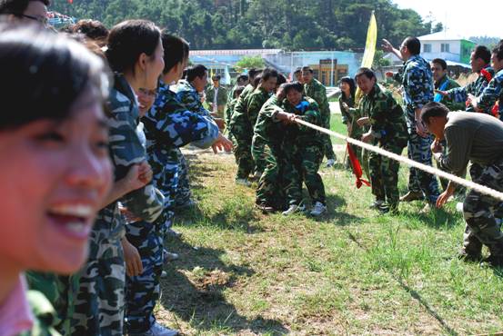 一轉(zhuǎn)眼,一上午的時間就過去了,拓展活動也基本結(jié)束,安排在最后的是商科的傳統(tǒng)項目:拔河,這個項目很消耗體力,所以安排在最后。
