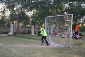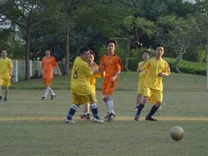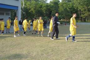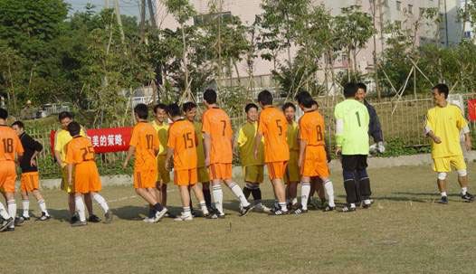 近日,商科足球隊(duì)?wèi)?yīng)邀去參加一場(chǎng)足球友誼賽,3點(diǎn)半到達(dá)目的地,換好隊(duì)服,做做準(zhǔn)備活動(dòng)擺擺陣勢(shì)?,商科的小伙子各個(gè)精神抖擻,雖是客場(chǎng)做戰(zhàn),氣勢(shì)也不讓分毫。悄悄的說(shuō),老總親自帶隊(duì)自然底氣十足。再看,主場(chǎng)的帥哥也不耐,各個(gè)摩拳擦掌躍躍欲試?礃幼咏裉斓谋荣愵H有看頭。