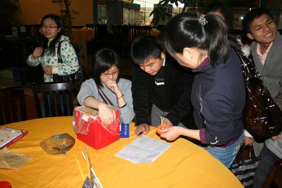 在晚會開始之前,公司準(zhǔn)備了有趣的燈謎競猜活動,先到的同事愉快的加入到活動中。
