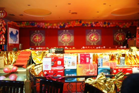 晚會為員工準(zhǔn)備了豐盛的禮品。