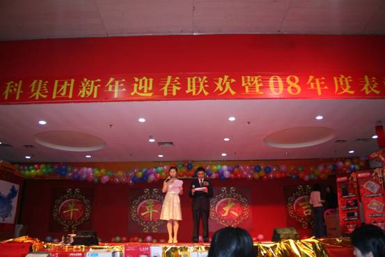 下午四時許,主持人宣布商科集團(tuán)迎春晚會暨08年度表彰大會正式開始。