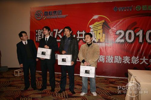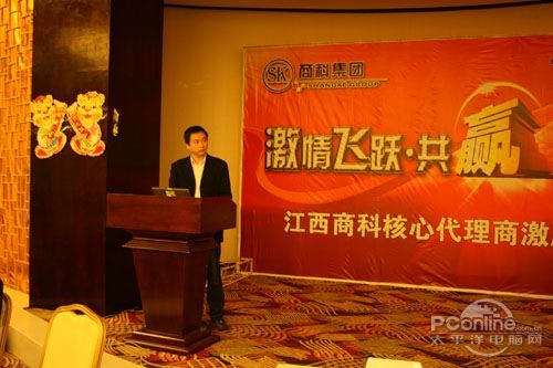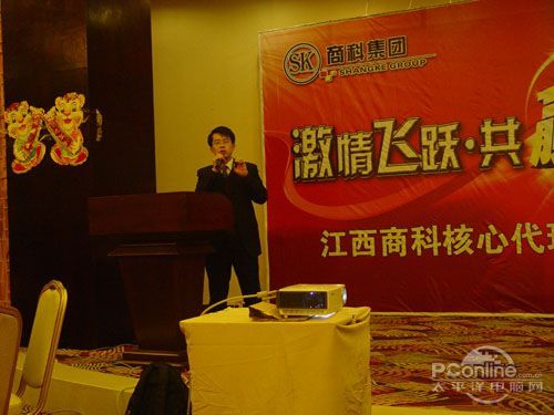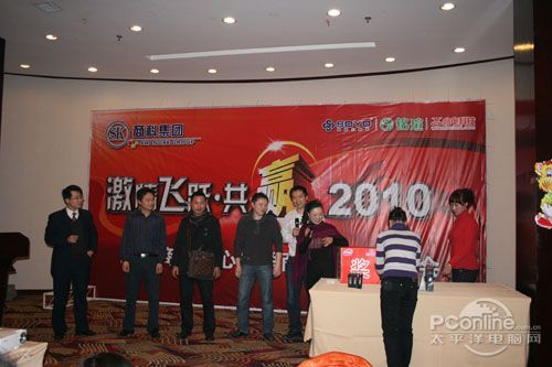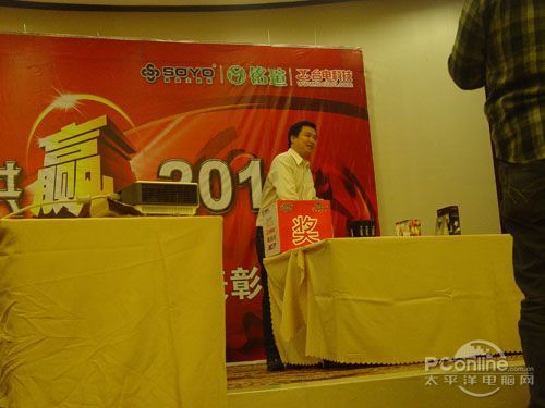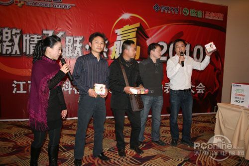 本次會議有眾多經(jīng)銷商應(yīng)邀赴會,更有來自NVIDIA和intel的嘉賓光臨現(xiàn)場,其中包括來自NVIDIA公司的彭華先生,以及INTEL公司的吳偉先生。而我們太平洋電腦網(wǎng)江西站作為到會的媒體代表,也被作為嘉賓介紹給大家。與上面的幾位重量級人物一起被主持人隆重介紹給廣大商家,筆者實(shí)在是感到有點(diǎn)汗顏!會議首先由NVIDIA公司的彭華先生為大家介紹阿凡達(dá)與NVIDIA的淵源(原來《阿凡達(dá)》出色的CG效果可是由NVIDIA的顯卡打造而成的)以及NVIDIA公司的新技術(shù)與政策。然后再由江西商科總經(jīng)理吳暉先生講話,再后就是對2009年度成績突出的商科合作伙伴進(jìn)行表彰頒獎(獎品非常豐厚哦,竟然是臺電上網(wǎng)本)。最后就是激動全場的抽獎活動了!