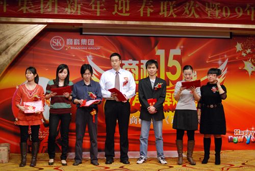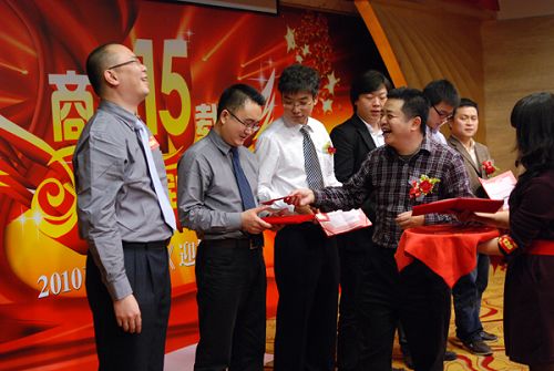接著頒發(fā)的是商科09年部門(mén)之星獎(jiǎng),由集團(tuán)熊總頒發(fā)。這些員工2009年工作成績(jī)表現(xiàn)突出,由公司各部門(mén)民主推選獲得,我們向他們表示祝賀
