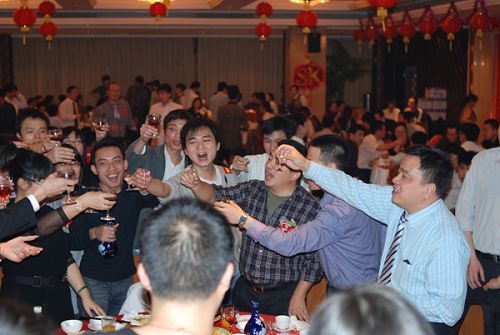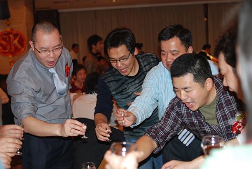商科集團(tuán)孫總、劉總依次向各部門(mén)員工敬酒,表達(dá)公司領(lǐng)導(dǎo)對(duì)員工的關(guān)懷,宴會(huì)在歡樂(lè)的氣氛中進(jìn)行