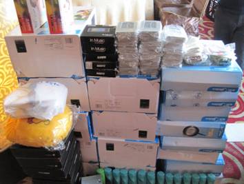 晚會游戲紀念品以及抽獎的部分禮品,除了這些禮品外還有現(xiàn)金獎,手機充值卡等等。
