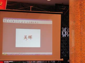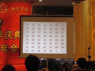 在屏幕中出現(xiàn)的1-54中,每個數(shù)字后面都代表中晚會在場的同事,看看誰會被選中呢?被選中的同事要參加我們準備的游戲《快樂傳真》。