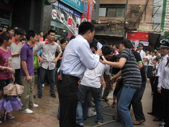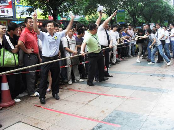 加油加油加油,,隊員們連吃奶的力都使上了,標志帶向前移動一下,眼看就要被拉過去了,但每一個人都沒有放棄,使出全身力量,拉拉隊的聲音早就沖過云宵,叫喊聲響成一片,每個人都快瘋掉。只見秦明和盧健華兩位份量級的人物向后一倒,倒在地上,紅色標記帶隨著這一拉,越過紅線,大家跳了起來,第一局,贏啦!
