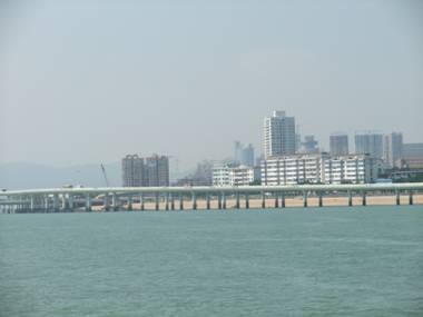 廈門市區(qū)連接海滄開發(fā)區(qū)之間的海滄大橋,就是我們此次十一去廈門的必經(jīng)之路,當(dāng)旅行巴士上午八點從深圳出發(fā),一路高速行駛至海滄大橋上的時候,俺趕緊拿出卡片機(jī)搶拍下了大橋的景色(雖然畫質(zhì)不高,也足以保存留戀了,呵呵。。。)。