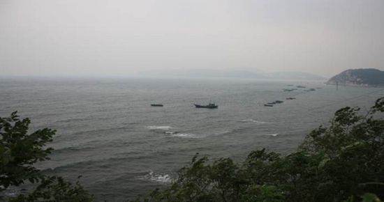 很大的風(fēng),這個海里可是養(yǎng)了很多珍珠,仔細看看能看清?赡芤彩怯捎谔鞖庠,拍出來的照片就是這個效果了。