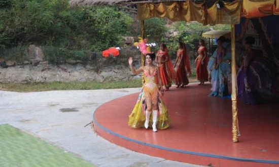 聽說這個可是這兒的招牌人妖呀。挺高的個兒。 表演很一般,別看這破的小臺,來看的人還挺多,看后發(fā)現(xiàn)真不怎么的,和海南那個人妖比起來真是太遜色了,沒看頭。哈哈。 接下來去的闖關(guān)東影視城,據(jù)說很多少電視劇和電影都有在這兒拍過,看了還真是。