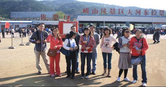 這去的是極地海洋館,那個表演真是讓人叫決呀。這些小家伙們真是太可愛了。 大連的行程到這兒基本上就結(jié)束了,由于天氣原因明天的一天就只能是在船上和車上渡過了。 我們的下一站青島,希望在青島能有個好天氣。青島三環(huán)海、一面依山,海岸迂回曲折,山色郁郁蔥蔥,兼有山海之勝。市區(qū)的房舍建筑層壘參差,風(fēng)格各異,但多為紅瓦覆頂,兼有歐亞美各洲和中國民族風(fēng)格,與碧海、藍天、綠樹共同構(gòu)成了城市特有的風(fēng)貌。位于青島東北部的嶗山旅游風(fēng)景區(qū),一向以山峻石奇,林木繁茂、古跡眾多的而著稱。青島著名的旅游景點還有:棧橋、小青島、魯迅公園、海水浴場、八大關(guān)、嶗山的上清宮與下清宮、一灣之隔的黃島、平度的天柱山魏碑、即墨的田橫島等等。 都說來了青島就一定要上嶗山,它是山東半島的主要山脈,嶗山的主峰名為“巨峰”,又稱“嶗頂”,海拔1132.7米,是我國海岸線第一高峰,有著海上“第一名山”之稱。它聳立在黃海之濱,高大雄偉。當(dāng)?shù)赜幸痪涔耪Z說:“泰山雖云高,不如東海嶗。” 到了青島天氣果然很好呀,上一張咱們的合影吧,看看大家都像沒睡醒的樣子,人沒到齊呀。