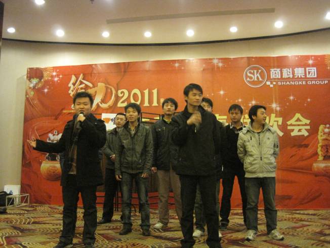 倉(cāng)儲(chǔ)部的節(jié)目,歌舞表演《纖夫的愛》,這個(gè)里面角色很齊嘛!除了兩位唱歌的外,還有兩位纖夫, 兩位妹妹,船里頭還有三個(gè)人物,也應(yīng)該算是妹妹了吧。 之前本來(lái)打算弄個(gè)木船的,后來(lái)想想,2011新的一年要有新的氣氛,我們就將把他變成了泰坦尼克號(hào)了, 希望我們公司所有同事和自己的愛人之間的感情既能像杰克和露絲那樣浪漫,有能像纖夫和妹妹那樣堅(jiān)定長(zhǎng)久。 本節(jié)目榮獲三等獎(jiǎng)。
