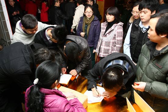 每一位到來的同事都需要在簽到處抽取自己的幸運(yùn)號(hào)碼,并在簽名墻上簽名。