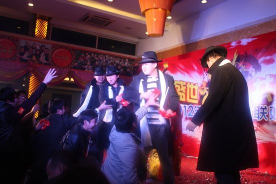 晚宴進(jìn)行到高潮時,商科的財神閃亮登場了,與以往不同的是,今年財神身邊多了四位“兇悍”的保鏢。