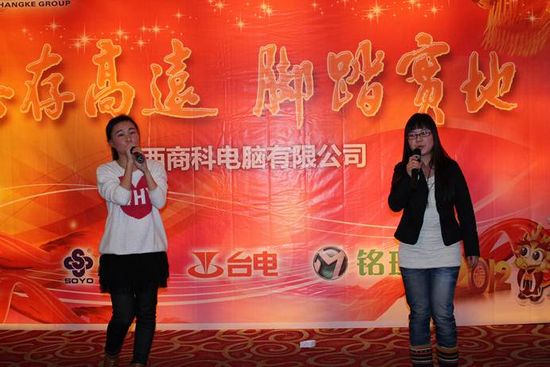 各位同仁成功伴著艱辛,喜悅伴著汗水,在忙忙碌碌的每一天中,我們不知不覺迎來了嶄新的2012年。2012年1月16日江西商科新春晚會(huì)在百瑞麗景酒店成功舉行,和去年相比,同樣的地點(diǎn),不一樣的面孔,同樣的時(shí)間,不一樣的心情,江西商科更加龐大的隊(duì)伍懷著更加喜悅的心情迎來了2012新春晚會(huì)。本次晚會(huì)共分為新人秀、表演、游戲、抽獎(jiǎng)4個(gè)部分。