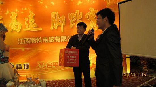 首先由分公司經(jīng)理吳暉抽第一個(gè)獎(jiǎng)項(xiàng):