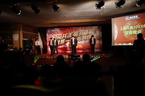 2013年1月13日上海分公司在坤明湖度假村召開了一場(chǎng)別開生面的年度總結(jié)會(huì)。會(huì)議包括上午的“2012年度總結(jié)會(huì)議”、下午的“室內(nèi)激情拓展活動(dòng)”還有晚上的“2013年天喜春節(jié)聯(lián)歡晚會(huì)”。