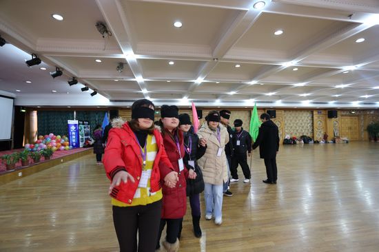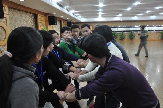 下午的拓展訓(xùn)練雖然因?yàn)橛晏旆旁诹耸覂?nèi),