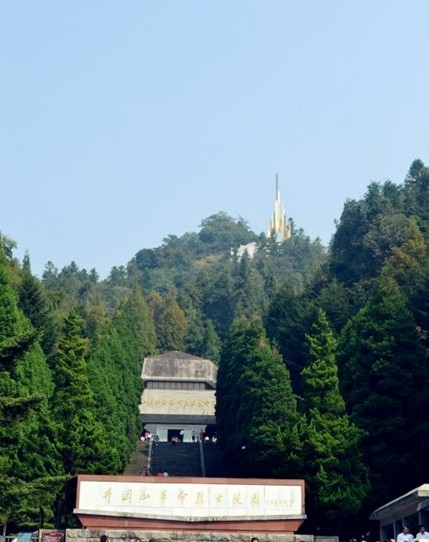 。陥@由井岡山革命烈士紀(jì)念堂、碑林、雕塑園、革命烈士紀(jì)念碑組成,革命紀(jì)念碑是看井岡山茨坪最佳位置,能夠看到茨坪全景)