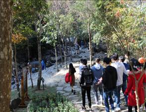 一路上, “千年駱駝”、“空中走廊”、“一線天”的景點美不勝收,盡管山里天氣比較冷,但難于阻擋小伙伴們的熱情;一路嬉笑打鬧,一邊欣賞沿途美景,好不愜意!