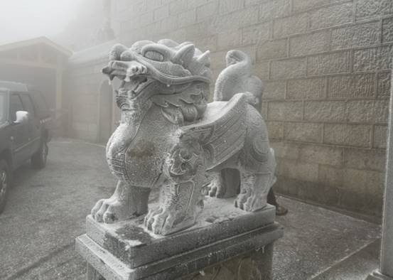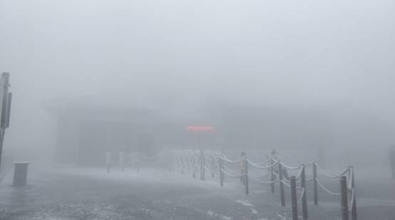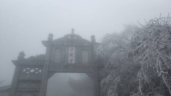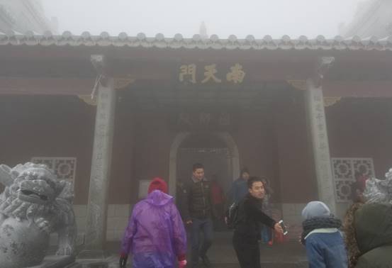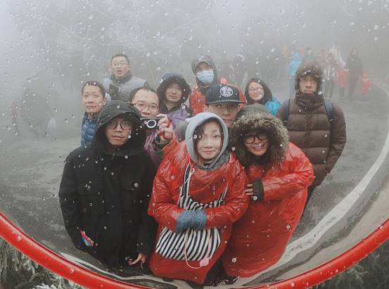 山腳下集體照,沒有去的時(shí)候一直覺得衡山肯定不會(huì)冷到哪里去,可是一下車我們就發(fā)現(xiàn)錯(cuò)了,風(fēng)是那么的大,空氣中的濕氣是那么的重。坐上景區(qū)的小車開上山頂后,一打開門,眼前白茫茫的雪景讓人眼前一亮,2017年的第一場雪!